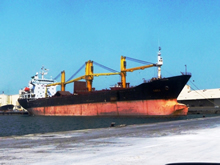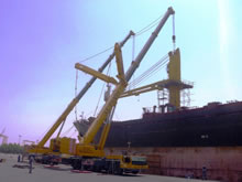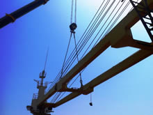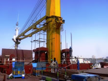 ?將起重機(jī)??吭诖a頭一側(cè)。