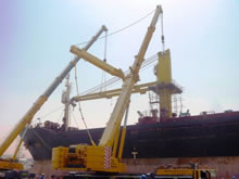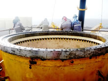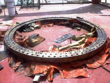 要求GUFEAL以最少的停機(jī)時間進(jìn)行回轉(zhuǎn)軸承更換。一旦船只被固定在港口,工人們就會動員起來,進(jìn)行工作現(xiàn)場評估和重型起重機(jī)的平移。
