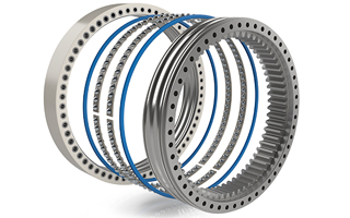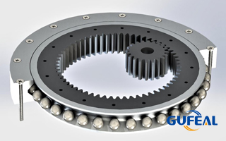 GUFEAL雙排球式回轉(zhuǎn)支承可以同時承受軸向載荷,傾斜力矩和徑向載荷。頂球主要承受軸向載荷和正向傾斜力矩。落球承受相反的傾斜力矩。因此,雙列球回轉(zhuǎn)軸承的負荷能力大于四點接觸球回轉(zhuǎn)軸承。但是,摩擦比要大得多。比后者。GUFEAL雙排球式回轉(zhuǎn)支承由內(nèi)圈,外圈,雙排球,墊片,密封裝置和其他組件組成。由于頂球主要承受軸向載荷和傾覆力矩載荷,因此頂球的尺寸大于落球的尺寸。為了適應(yīng)不同軸向載荷,傾覆力矩和軸向載荷的各種工作條件,接觸角將相應(yīng)調(diào)整。環(huán)的結(jié)構(gòu)可以分為整體型和剖分型兩種。通常,整體式保持較高的剛性。分體式更方便調(diào)節(jié);兩個隔離環(huán)在交付前通過螺栓固定。GUFEAL雙列回轉(zhuǎn)支承在球之間具有保持架(或間隔塊)。僅當(dāng)要求大負載時,才應(yīng)用全球類型。全球型的承載能力肯定更大。但是,這種設(shè)計所產(chǎn)生的增大的摩擦力使?jié)L珠容易劃傷。雙排回轉(zhuǎn)支承主要用于承受軸向載荷,較大的傾擺力矩以及徑向安裝位置受限的工作條件。