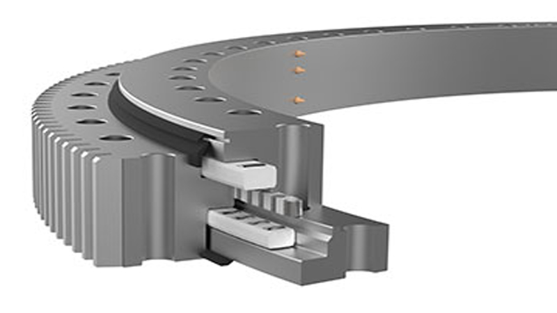 三排滾柱式回轉(zhuǎn)支承有三個(gè)座圈,上下及徑向滾道各自分開,使得每一排滾柱的負(fù)載都能確切地加以確定。能夠同時(shí)承受各種載荷,是四種產(chǎn)品中承載能力最大的一種,軸、徑向尺寸都較大,結(jié)構(gòu)牢固,特別適用于要求較大直徑的重型機(jī)械,如斗輪式挖掘機(jī)、輪式起重機(jī),船用起重機(jī)、港口起重機(jī),鋼水運(yùn)轉(zhuǎn)臺(tái)及大噸位汽車起重機(jī)等機(jī)械上。